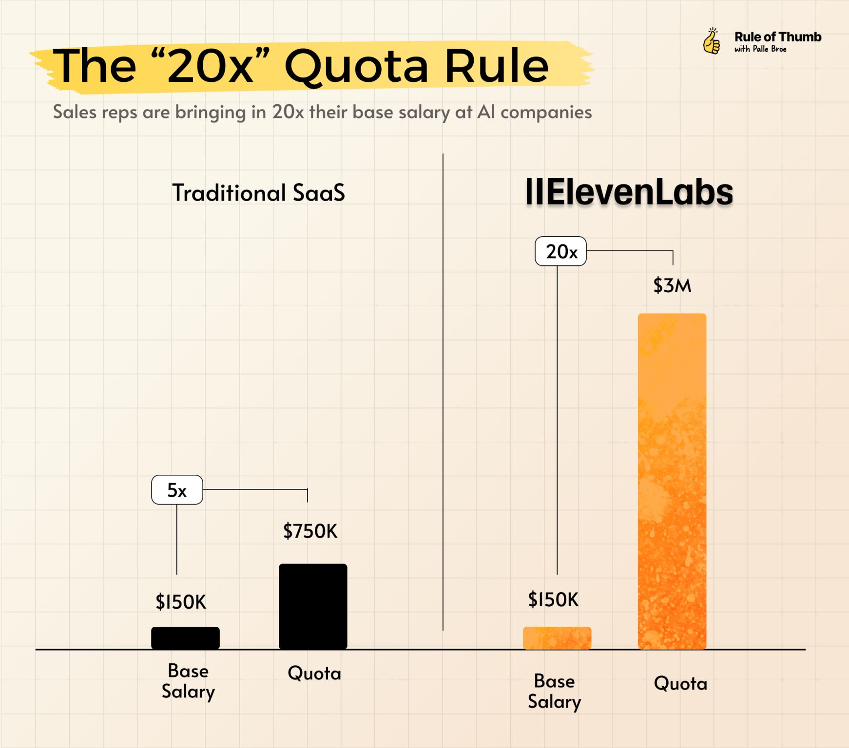 Le point fort de ce contenu, c’est qu’il met en lumière une idée simple : quand la demande de marché est déjà très forte, les règles du sales changent. Le post cite le cas d’ElevenLabs avec des quotas pouvant atteindre 20x le fixe, très au-dessus des standards SaaS plus classiques évoqués par l’auteur.
